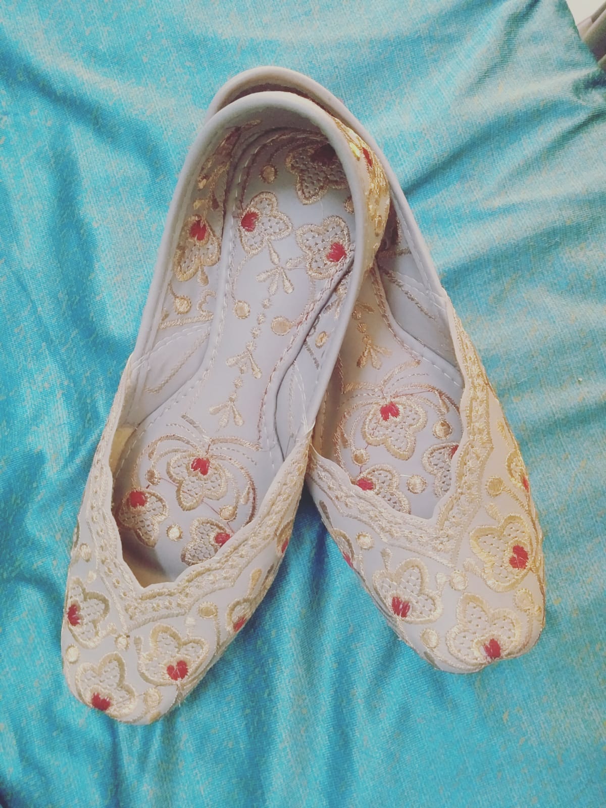 3. Cream and Red Floral Jutti [size-6'7'8'9'10'11'12]
