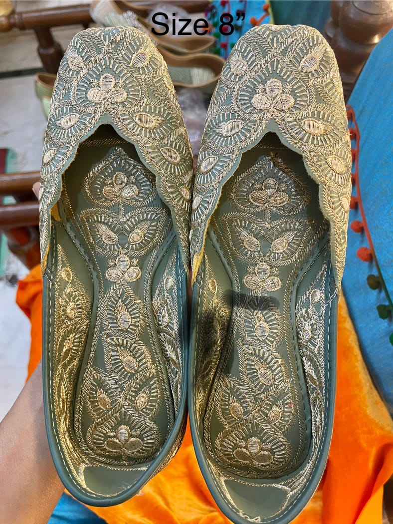 1. Green and Golden Embroidered Jutti [Size -6'7'8'9'10'11'12]